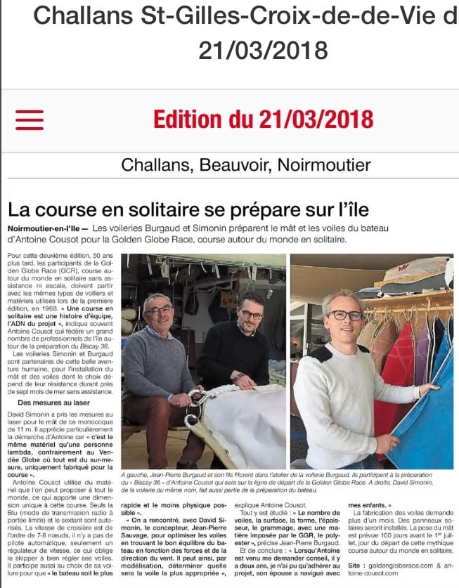 La Voilerie Simonin est créée en 1985 par Gérard Simonin après une formation à la voilerie Burgaud.