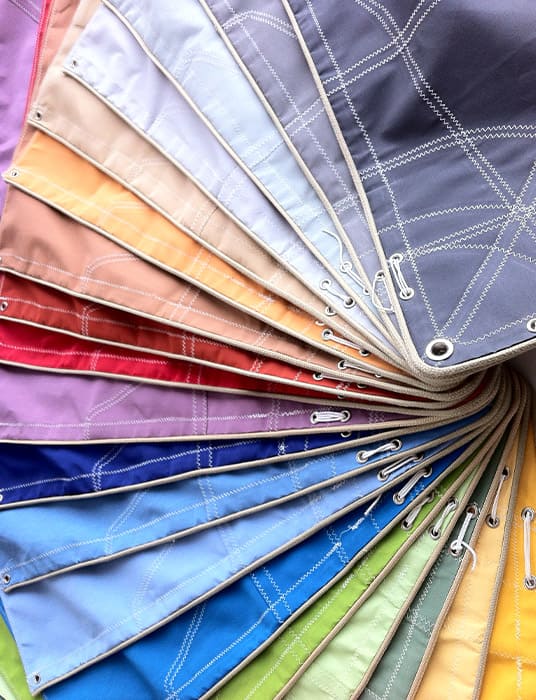 Nos tissus sont disponibles dans une large gamme de coloris afin de s’adapter à tous les styles d’aménagement extérieur.
