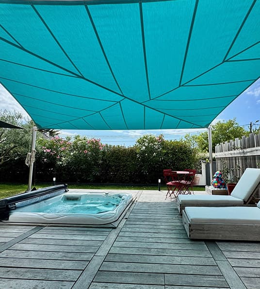 Des voiles fixes réalisées sur-mesure, pensées comme des éléments d’architecture extérieure, alliant performance technique, durabilité et esthétisme.