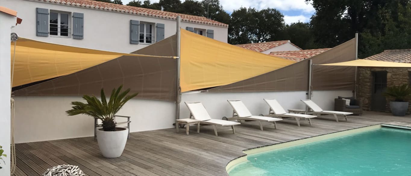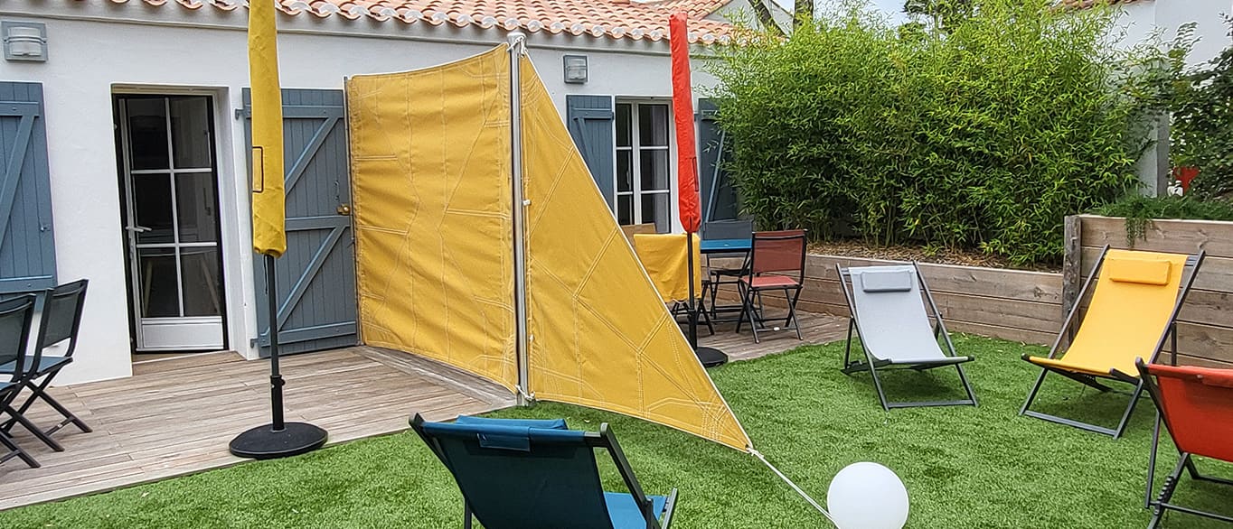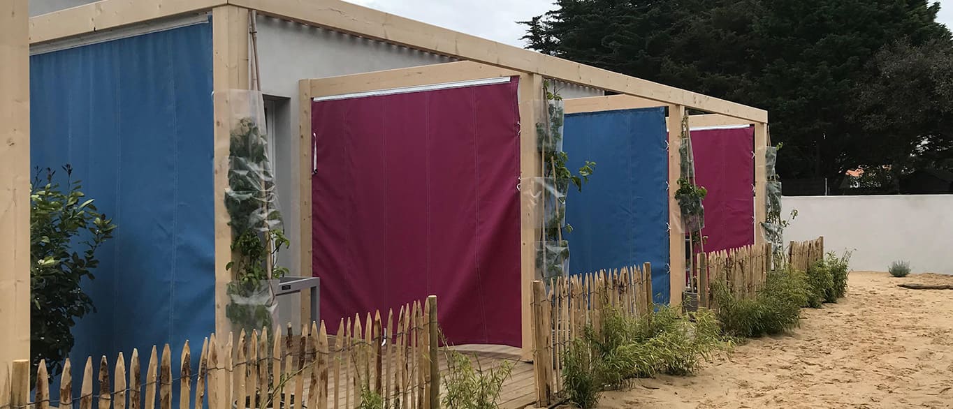Les brises-vue sont réalisés en tissu acrylique pour créer de l’intimité.