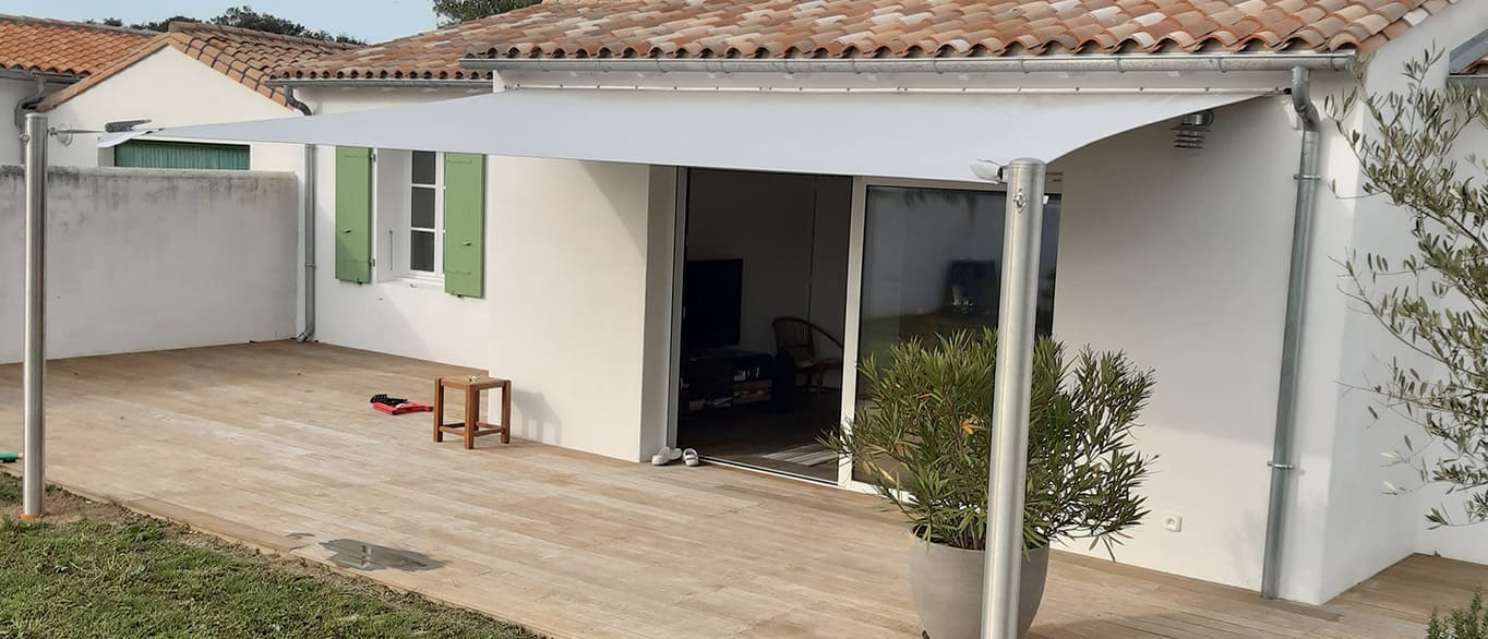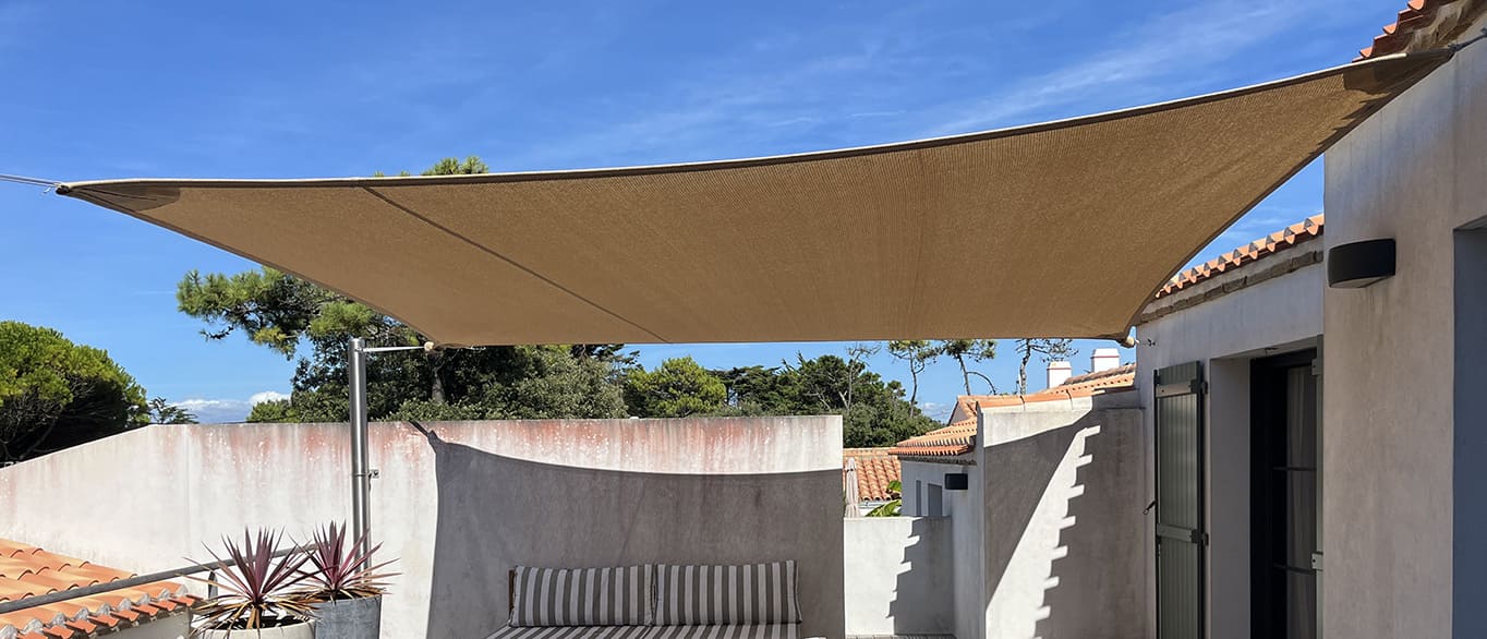 Nos voiles d’ombrage fixes sont fabriquées artisanalement sur mesure dans notre atelier de voilerie à Noirmoutier.